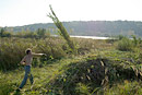 We worked in the neglected fields at Acskó extending the cleared area that we have created over the last three years. We also continued with the scrubclearing in the plum and quince orchards below Tornakápolna and worked in teams to construct 20 artifical stork’s nests, which were afterwards erected on poles in the local villages in time for the arrival of the White Storks in April.